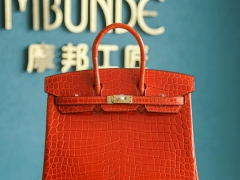 Hermes Birkin 25CM 橙色 亮面两点 尼罗鳄 金扣 纯手工 HandMade