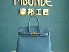 爱马仕 Hermes Birkin 25cm Togo皮 CC75 Blue Jean牛仔蓝 金扣 全手工